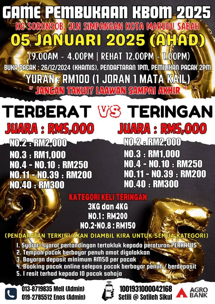Main Prizes: RM 5,000.00